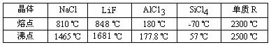 C.单质R是原子晶体 D.AlCl3为分子晶体