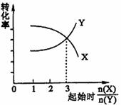 15、在一定条件下,将X和Y两种物质按不同的比例放入密闭容器中反应,平衡后测得X,Y的转化率与起始时两物质的物质的量之比nx/ny的关系如图所示,则X,Y的反应方程式可表示为( )