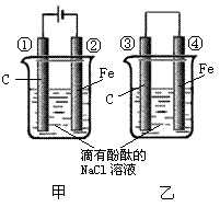 (4)甲、乙两装置电极附近的溶液首先变红的电极分别是 、 (填序号)高*考*资*源*网