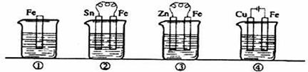 9.下图各容器中盛有海水,铁在其中被腐蚀时由快到慢的顺序是
