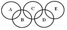 ⑵下图所示的五元环代表A、B、C、D、E五种化合物,圆圈交叉部分指两种化合物含有一种相同元素,五种化合物由五种短周期元素形成,每种化合物仅含两种元素,A是沼气的主要成分,B、E分子中所含电子数均为18,B不稳定,具有较强的氧化性,其稀溶液是医疗上广泛使用的消毒剂,E的分子结构模型为