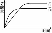 2Z(g),在温度T1和T2时,产物的量与反应时间的关系如图所示。符合图示的正确判断是