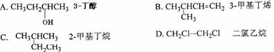 A、 2-甲基-2-丁烯 B 、3-甲基-1-丁炔 C、2,3-二甲基-1-丁烯 D、2-甲基-1,3-丁二烯