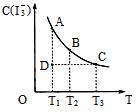 I3-的物质的量浓度c(I3-)与温度T的关系如图所示(曲线上任何一点都表示平衡状态)。下列说法正确的是:( )
