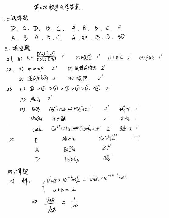 (2)、(2分)将AlCl3溶于水后,经加热蒸发、蒸干,灼烧,最后所得白色固体的