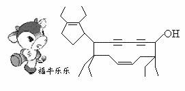 13.2008年北京残奥会吉祥物是以牛为形象设计的“福牛乐乐”。有一种有机物的键线式也酷似牛形(下图所示),故称为牛式二烯炔醇。下列说法不正确的是: