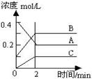 12.右图所示为8000C时A、B、C三种气体在密闭容器中反应时浓度的变化,只从图上分析不能得出的结论是