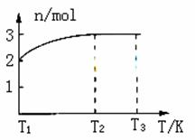 一定温度下,将1molN2O4置于密闭容器中,保持压强不变,升高温度至T1的过程中,气体由无色逐渐变为红棕色,温度继续由T1升高到T2的过程中,气体逐渐变为无色。若保持T2,增大压强,气体逐渐变为红棕色。气体的物质的量n随温度T变化如图所示。