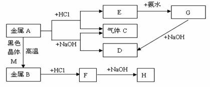 30、(8分)现有常见金属A、B,它们之间存在如下的转化关系(图中有些反应的产物和反应的条件没有全部标出),其中G、H为白色沉淀。请回答下列问题: