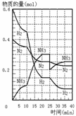 24.( )500℃、20Mpa时,将H2和N2置于一容积为2L的密闭容器中发生反应。反应过程中H2、N2和NH3物质的量变化如图所示,下列说法正确的是