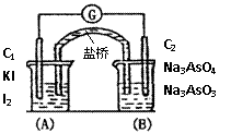 AsO33-+I2+H2O是可逆反应。设计如图装置(盐桥中的阴、阳离子可以自由移动,盐桥在原电池中不参与反应,只起导体作用),分别进行下述操作:(Ⅰ)向(B)烧杯中逐滴加入浓盐酸,(Ⅱ)向(B)烧杯中逐滴加入40%NaOH溶液。结果均发现电流计指针偏转。据此,下列判断正确的是