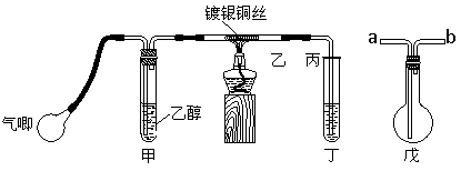 (2)实验时,先加热玻璃管乙中的镀银铜丝,约1分钟后鼓入空气,此时铜丝即呈红热状态。若把酒精灯撤走,控制一定的鼓气速度,铜丝能长时间保持红热直到实验结束。