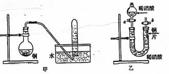 (2)实验装置甲能否证明铜和稀硝酸反应的产物是NO气体 (填:“能”或“不能”)请阐述理由(包括化学方程式)是