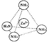 在[Zn(NH3)4]2+中,Zn2+位于正四面体中心,N位于正四面体的顶点,试在下图中