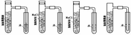 10.将炭粉和铁粉均匀混合,撒入内壁分别用氯化钠溶液和稀醋酸溶液润湿过的具支试管 中,并按下图装置好仪器,观察下图,示意正确的是( )
