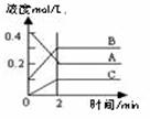 19.右图所示为800 ℃ 时A、B、C三种气体在密闭容器中反应时浓度的变化,只从图上分析不能得出的结论是( )。