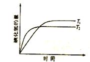 2HI(g),在温度T1和T2时,产物的量与时间的关系如右图所示,符合图象的正确的判断是( )