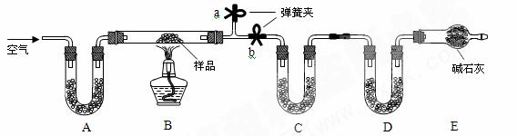 ⑶若将A装置换成盛放NaOH溶液的洗气瓶,则测得的NaCl含量将 (填“偏高”、“偏低”或“无影响”,下同);若B中反应管右侧有水蒸气冷凝,则测定结果中测定结果中NaHCO3的含量将___________;若撤去E装置,则测得Na2CO3·10H2O的含量__________。