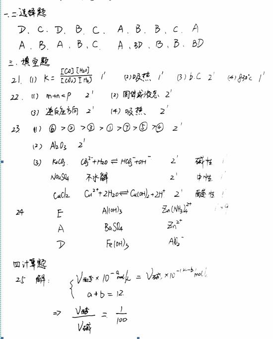 22、(8分)在一定条件下,可逆反应:mA+nB