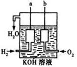 (3)美国阿波罗宇宙飞船上使用了一种新型装置,其构造的一部分如右图所示:a、b两个电极均由多孔的碳块组成。此装置的负极反应式为 ,当正极消耗5.6L(标准状况)气体时,外电路转移的电子数为 。