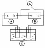 上的c点显红色。为实现铁上镀铜,接通后,使c、d