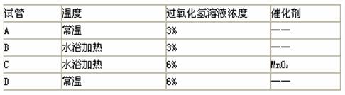 14.下列四个试管中,过氧化氢分解产生氧气的反应速率最慢的是![]()