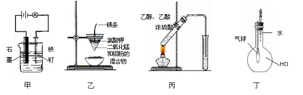 C.装置丙:实验室制取乙酸乙酯 D.装置丁:验证HCl气体在水中的溶解性