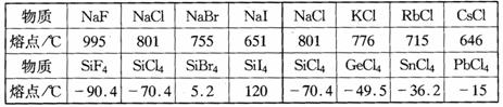 (3)钠的卤化物的熔点比相应的硅的卤化物的熔点高得多,这与