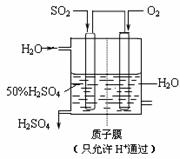 (4)若以右图所示装置,用电化学原理生产硫酸,写出通入O2电极的电极反应式为 。