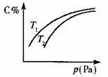 2C(气)平衡时C的体积分数与温度和压强的关系如图所示,下列判断正确的是