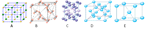 (4)下列是钠、碘、金刚石、干冰、氯化钠晶体的晶胞图(未按顺序排序)。与冰的晶体类型相同的是__ ___(请用相应的编号填写)
