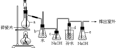 24、(12分) 1,2-二溴乙烷可作汽油抗爆剂的添加剂,常温下它是无色液体,密度是2.18g/cm3沸点131.4℃,熔点9.79℃,不溶于水,易溶于醇、醚、丙酮等有机溶剂。在实验中可以用下图所示装置制备1,2-二溴乙烷。其中分液漏斗和烧瓶a中装有乙醇和浓硫酸的混合液,试管d中装有浓溴(表面覆盖少量水)。