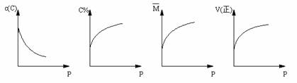 ,平衡后,C的体积分数为W%,若维持容器容积和温度不变,0.6molA 、0.3molB 和1.4molC为起始物质,达到平衡后,C的体积分数也为W% 。平衡后若缩小容器体积,C的浓度c(C)、C的体积分数C%、混合气体平均相对分子质量(M)和正反应速率[V(正)],随压强(P)的变化,一定符合的是![]()