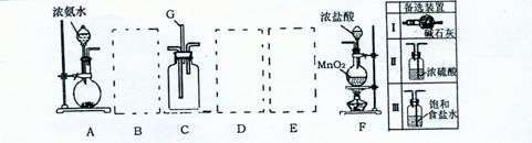 25. 某课外活动小组利用以下装置探究氯气与氨气之间的反应。其中A 、F 分别为氨气和氯气的发生装置,C为纯净的氯气于氨气反应的装置。