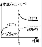 C.温度不变,T时刻,向PbI2饱和溶液中加入少量KI浓溶液,离子浓度变化如右图所示。