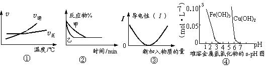 D.根据图④,若除去CuSO4溶液中的Fe3+可采用向溶液中加入适量CuO,至pH在4左右