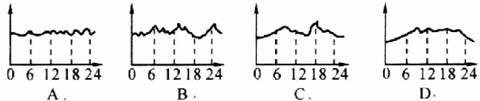 14.如图,下列曲线是某环境监测小组描绘的某市中心空气中NOx含量变化曲线,横坐标表示北京时间0时至24时,纵坐标表示NOx含量,其中比较符合实际的是
