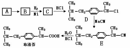 (9分)芬必得是一种解热、镇痛及抗生素药物的商品名,其主要成分是化合物对异丁基-α-甲基苯乙酸,药名为布洛芬,它有多种合成路线,其中一种的合成路线如下: