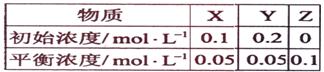 11.在25℃时,密闭容器中X、Y、Z三种气体的初始浓度和平衡浓度如下表:
