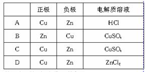 10. 某原电池的总反应的离子方程式是:Zn+Cu2+==Zn2++Cu,此反应的原电池的正确组成是![]()