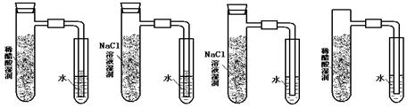 10.将炭粉和铁粉均匀混合,撒入内壁分别用氯化钠溶液和稀醋酸溶液润湿过的具支试管 中,并按下图装置好仪器,观察下图,示意正确的是( )