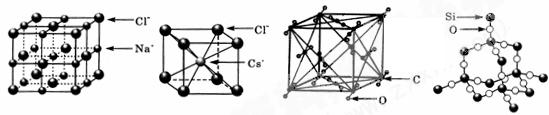 通常情况下,氯化钠、氯化铯、二氧化碳和二氧化硅的晶体结构分别如下图所示: