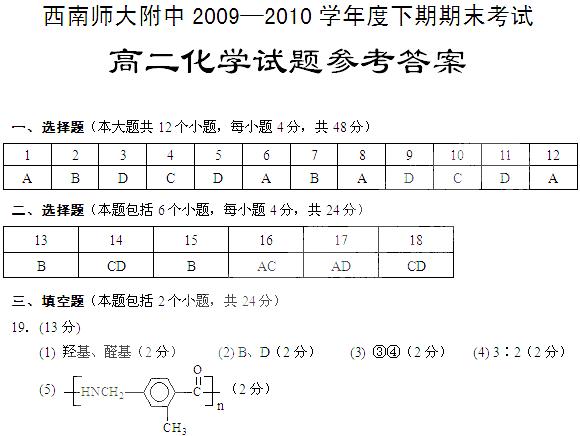 21. (12分) 某有机物A是葡萄糖在人体内的一种代谢产物,与甲醛具有相同的实验式,相对分子质量为90,A具有酸性,能分别与浓硫酸在一定条件下生成有机物B或C,B是一种六元环状化合物,C能够使溴水褪色且在一定条件下可以生成高聚物D。
