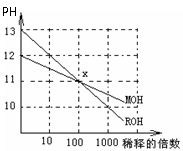 13.MOH和ROH两种一元碱的溶液分别加水稀释时,