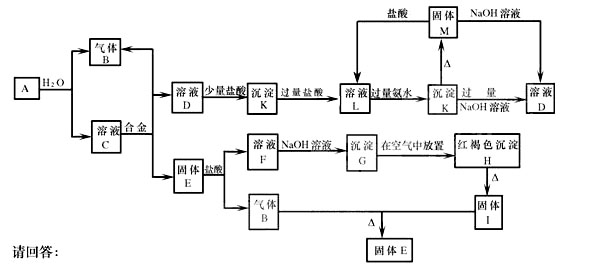 28. (10分)下列物质之间能够发生如图所示的化学反应,合金由两种金属组成,取C溶液进行焰色反应则火焰呈黄色。在反应中产生的水均未在图中标出。