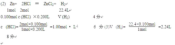 n (Zn)==0.100mol 2分
