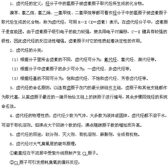 (2)氯、溴的氟代烷可对臭氧层产生破坏作用,形成臭氧空洞。