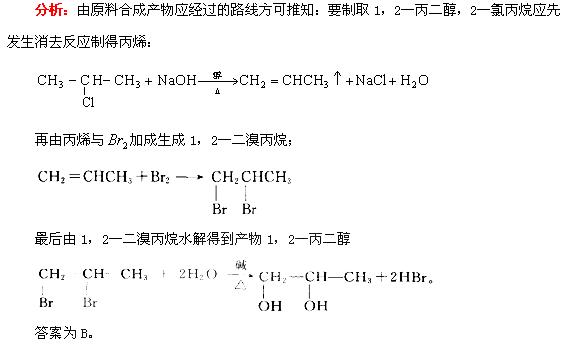 例3. 由2-氯丙烷制取少量的1,2-丙二醇时,需要经过下列哪几步反应( )