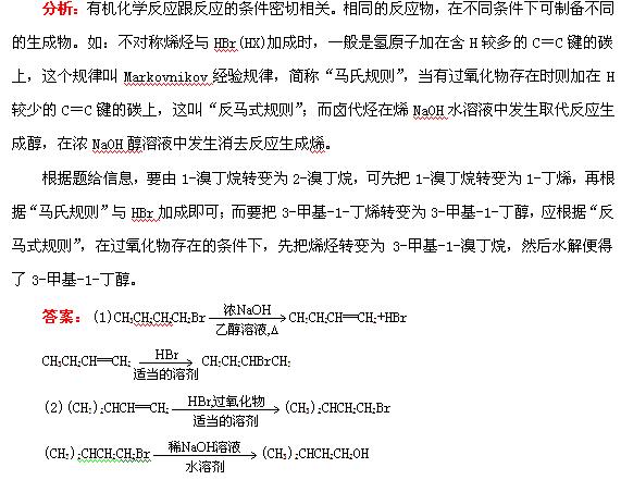例5. 在有机反应中,反应物相同而条件不同,可得到不同的主要产物。下式中R代表烃基,副产物均已略去。