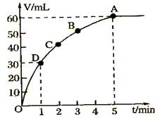 21、l mol MnO2粉末加入50mL过氧化氢的溶液里(ρ=1.1g•L-1),在标准状况下,放出气体的体积y和时间t的关系曲线如图所示![]()
